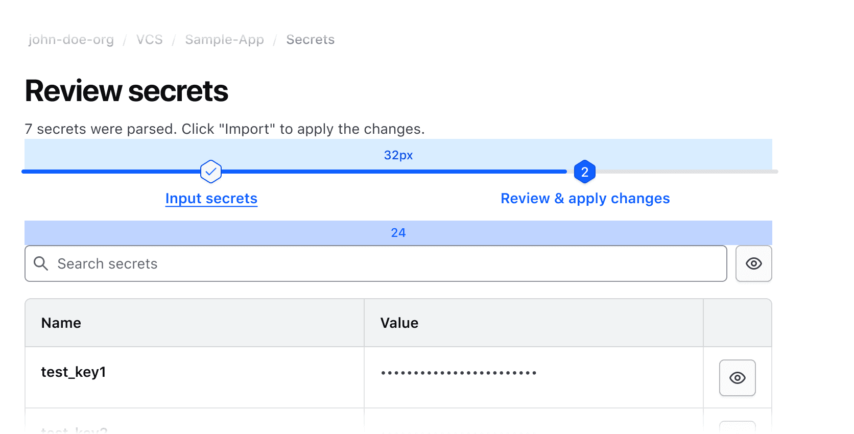 There should be 32px of spacing above the Stepper Nav and 24px below.